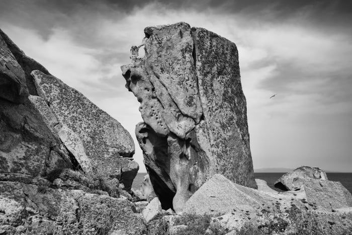 In fondo fotografare è come scrivere: il paesaggio è pieno di segni, di simboli, di ferite, di cose nascoste. E’ un linguaggio sconosciuto che si comincia a leggere, conoscere nel momento in cui si comincia ad amarlo, fotografarlo. (Mario Giacomelli) Non c’è traccia di attività umana ma solo l’effetto del tempo che passa e tutto muta e consuma, nelle opere del fotografo Gianluca Chiai che mostrano il lento processo di trasformazione dell’area marina protetta di Capo Carbonara, nella costa sud-orientale sarda. Con un approccio silente e contemplativo Chiai fissa la bellezza naturale del paesaggio. Strutture pietrose, paesaggi costieri, rocce monolitiche, distese marine e il grande faro dell’isola dei Cavoli sono il pretesto per cogliere l’essenza più profonda dell’isola, con l’obiettivo di decifrare quella natura selvaggia che la contraddistingue e definire l’importanza dello spazio percepito al di là di facili intenti descrittivi. Paesaggi naturali, sintesi tra tecnica creatività e impegno per la difesa dell’ambiente, lo accostano alla ricerca e all’esperienza emozionale di Ansel Adams. Non a caso la fotografia di Gianluca Chiai è un inno alla natura tra spazi infiniti dove tutto è attesa ed equilibrio e l’elemento esasperato del bianco e nero si declina in una infinità di grigi. Abile nel realizzare immagini che conferiscono nuove possibilità di percezione con un approccio poetico e al tempo stesso spettacolare, Chiai offre ai nostri occhi vedute sublimi che suggeriscono straordinarie sensazioni di immobilità, zone altre che potrebbero appartenere a qualunque tempo, sottolineando la lenta erosione dei monoliti da parte degli agenti atmosferici e la completa mancanza di antropizzazione grazie alla tutela imposta. Roberta Vanali