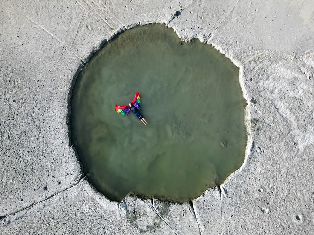 “Si focalizza sul concetto del distacco emotivo e sulla fascinazione del corpo femminile con l’obiettivo di sondare le fragilità esistenziali, quelle più radicate e pervasive nel substrato dell’animo umano, il territorio d’indagine del progetto ultimo di Giusy Calia. Quel distacco che è sinonimo di abbandono dove il passato è ormai irrimediabilmente perduto e il futuro mai avrà un volto. Sul filo della memoria prospettive inconsuete si aprono ai nostri occhi. Il mondo visto dall’alto di Giusy Calia è fatto di ruderi di archeologia industriale, di saline prosciugate e dighe abbandonate dove è l’acqua l’elemento unificante di un dialogo che si snoda all’infinito. Acqua come elemento di purificazione, come principio primordiale da cui tutto nasce. Come simbolo di purezza e rinascita spirituale, per svelare la natura più intima delle cose e rivelare uno sguardo introspettivo ed esclusivo. Perché l’acqua è la costante incontrastata del percorso artistico di Giusy Calia che le consente di estendere lo sguardo, di acquisire una visione altra della realtà. Quella visione soggettiva che in quest’ultimo progetto acquisisce con l’ausilio di un drone. L’artista costruisce articolati set fotografici, che restituisce concepiti come tagli cinematografici a volo d’uccello, luoghi fisici dalla valenza psichica, spazi che delimitano, definiscono e separano, abitati da fantasmi della memoria che aleggiano in un lento fluire dove morte e rinascita prendono forma. La componente onirica di ascendenza romantica avvolge e coinvolge. Spazio e tempo si annullano vicendevolmente con effetto catartico capace di smuovere i traumi della coscienza ed esorcizzarli. Drappi, fili e corde come possenti ancore suggeriscono l’incapacità di staccarsi dal ricordo, da ciò che è oramai perduto e dall’illusione di poterlo infine ritrovare altrove. È in divenire il progetto fotografico di Giusy Calia che ha coinvolto le donne che gravitano nella sua vita e fanno parte di quell’intreccio di relazioni intessuto negli anni e diventato mezzo di ispirazione e riflessione. Riflessione che chiama bellezza ed evoca stupore”. Roberta Vanali
