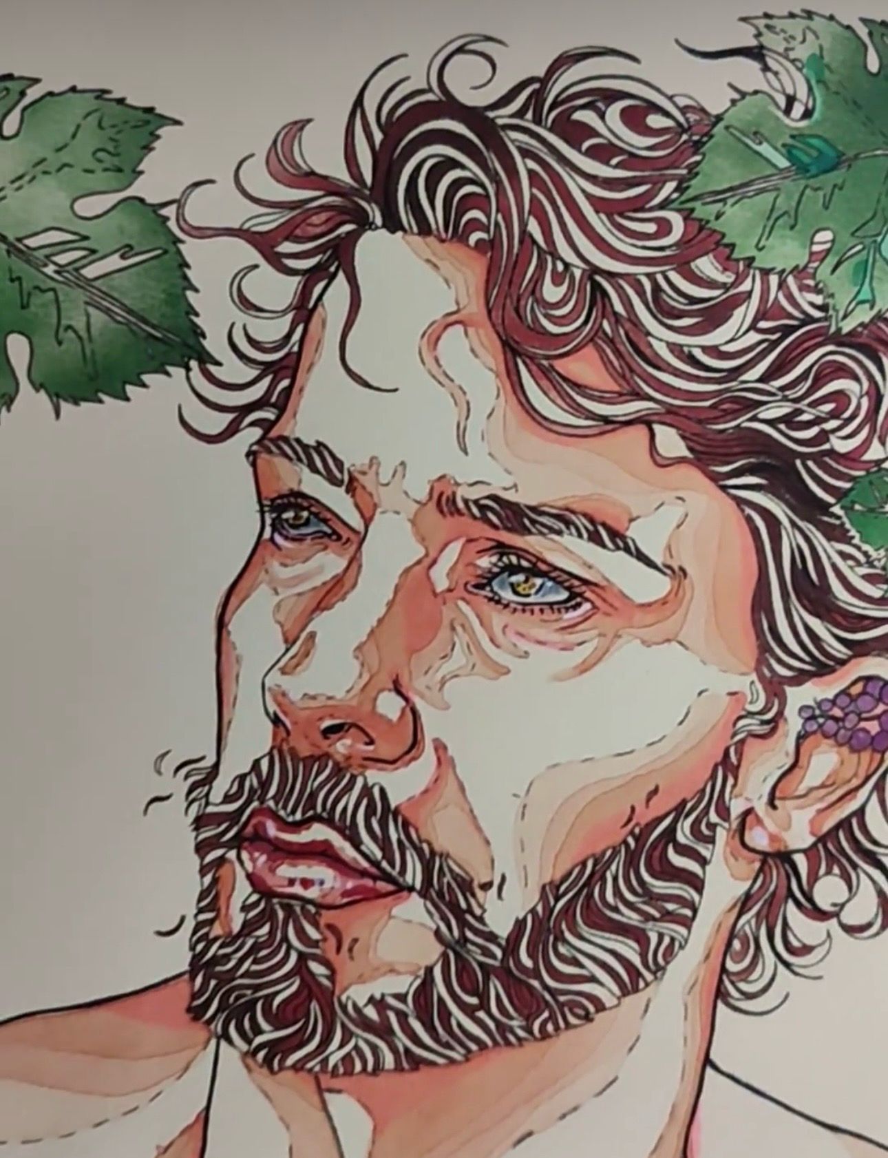 “Aristotele afferma che la prima componente dell’anima è quella vegetativa, responsabile della vitalità e del funzionamento del corpo, guidando battito cardiaco, respirazione, alimentazione e riproduzione.” Dall’origine della vita germogliano esseri umani e esseri viventi. Sebbene nasciamo in modo simile, la nostra crescita ci rende unici, ma talvolta questo ci allontana, creando distacco e differenze. La diversità, pur conferendoci unicità, può anche generare sofferenza, portandoci a percepire un distacco che potrebbe essere più immaginario che reale. La sofferenza causata dal distacco e dalla diversità può essere trasformata in speranza, trovando il senso più profondo attraverso la connessione con la fonte di vita originaria: la Madre Terra. I dipinti, realizzati con tecnica mista, si compongono con lo stesso processo con cui un albero costruisce la sua corteccia. La matita costituisce la base del lavoro, l’acquerello si muove elegantemente con la punta del pennello, creando macchie d’acqua sui volti, sulle piante e nello sfondo. I contrasti vengono enfatizzati dalle chine, mentre il bianco degli occhi conferisce la saturazione definitiva. Una luce chiara illumina i volti rappresentati, spesso rivolti con lo sguardo a chi li osserva.