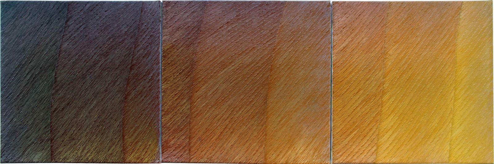 “Cromatica” di Rosanna Rossi, attraverso la serie Sonatine concepite a gruppi di tre, riassume i caratteri peculiari della ricerca della più grande artista sarda vivente; dirette discendenti delle Forme Sonate (2005), arrivano a un quindicennio di distanza da queste ultime e, al pari delle stesse, sono ordite per variazioni cromatiche, declinate nei toni dei blu, dei rossi, dei gialli e dei verdi fino alle massime sfumature. Texture su un unico tema compositivo che variano d’intensità cromatica, sono il risultato di pennellate di fondo perfettamente calibrate, date per velature e scandite dalla linea ripartita in punta di pennello, come modulo reiterabile all’infinito. Precisione chirurgica e rigore compositivo, mai assoluto poiché incline a valori emozionali, danno luogo a sinfonie cromatiche. Un ritmo segnico continuo che richiama composizioni musicali, brulicanti tessiture dalle inesauribili rifrazioni luministiche che obbligano lo sguardo a percorrerne tutta la superficie cromatica. Due Tondi di più grandi dimensioni fanno da contraltare alle Sonatine. Il primo sui toni dell’azzurro, al limite del monocromo, che acquisisce la parvenza del velluto; mentre il secondo, muovendo dal blu intenso, sfuma per dare spazio ai toni dell’ocra che s’infittiscono gradualmente fino al margine inferiore. Il tondo, simbolo di ciclicità armonia e perfezione, per l’artista assume una valenza di sacralità. L’arte di Rosanna Rossi è una inesauribile ricerca fatta di continua sperimentazione che si protrae da quasi sessant’anni, segnata da importanti esposizioni in tutta la penisola e dal sostegno di noti storici dell’arte. Roberta Vanali